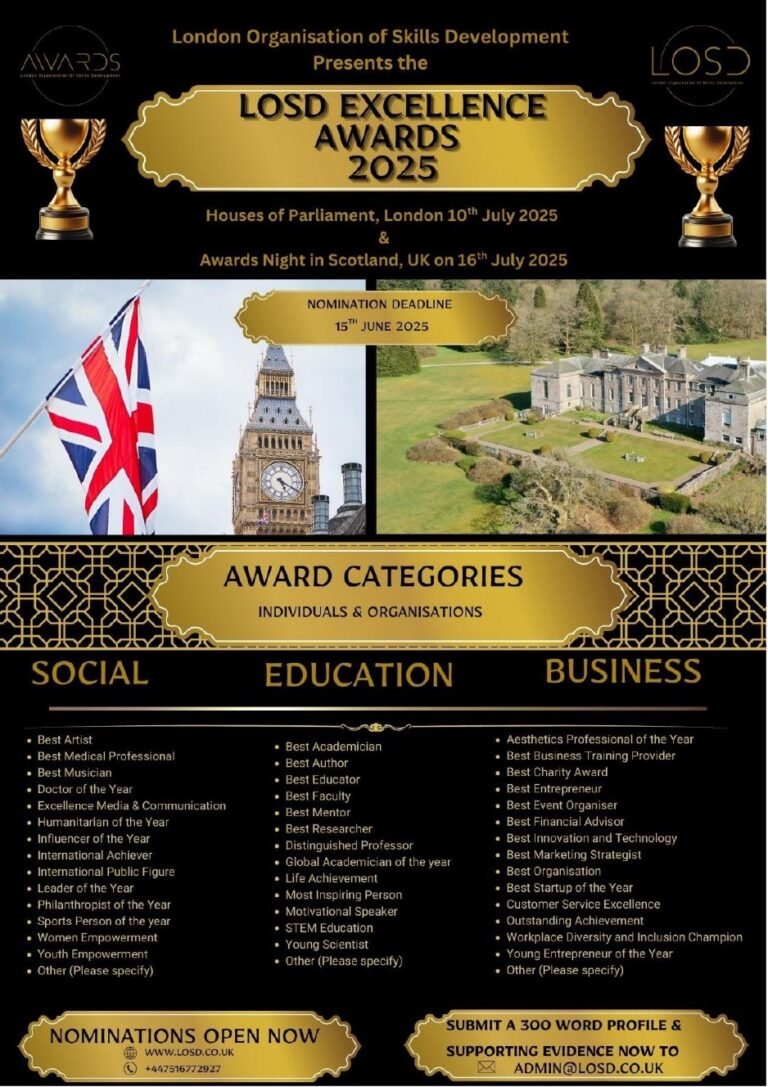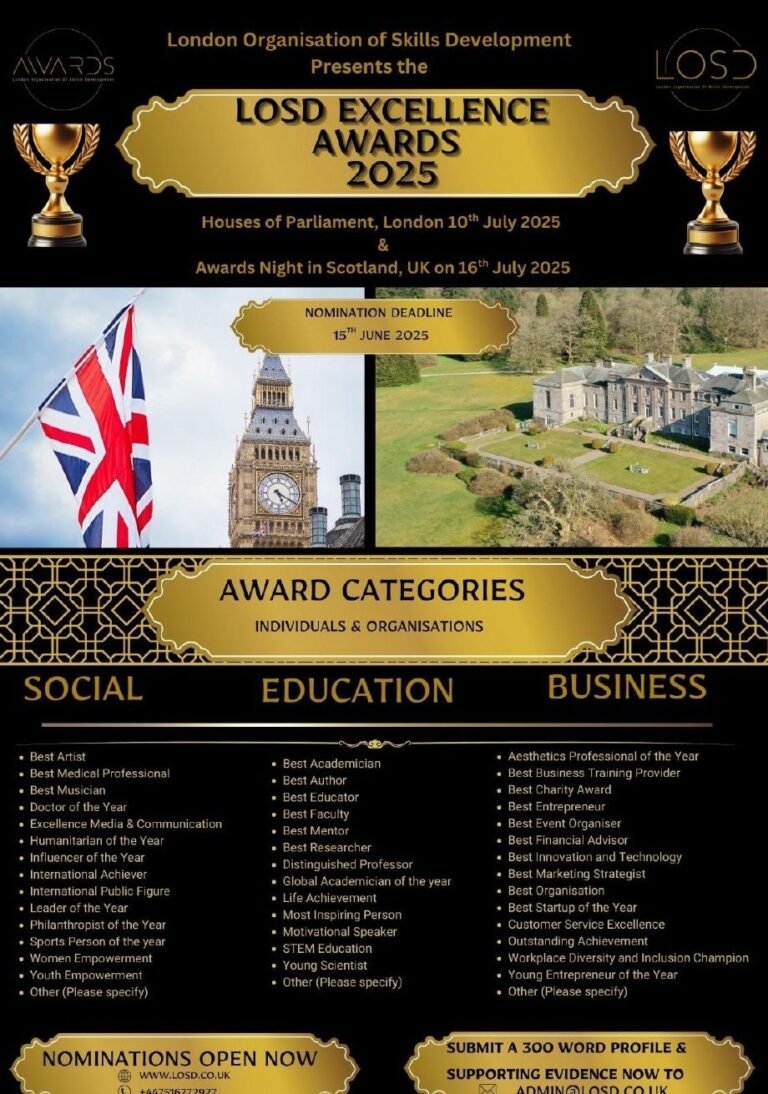 Following the outstanding success of the LOSD Excellence Awards held on 9th March 2025 at Fitzwilliam College, University of Cambridge, we are proud to announce the next edition: LOSD Excellence Awards Scotland, taking place on 16th July 2025 in the historic grandeur of a Scottish castle.